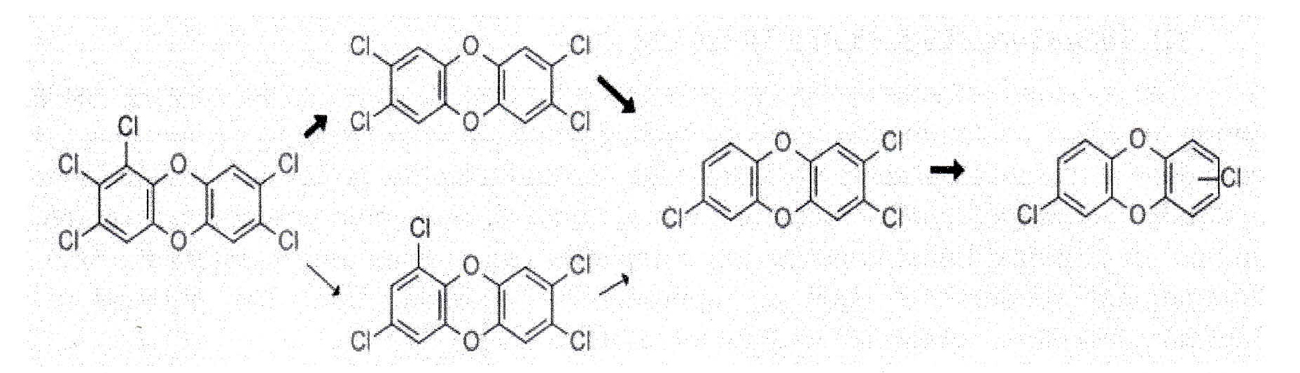 Bacteria of the genus Dehalococcoides are known to transform dioxins since 2003 when we showed that Dehalococcoides strain CBDB1 dechlorinates many different dioxin congeners (Bunge et al. 2003). The strain also transformed the most toxic congeners including 2,3,7,8-tetrachlorodibenzodioxin (Fig. 7) leading to products with much lower toxicity.