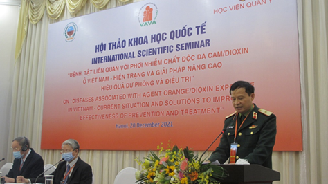 The report read by Prof. Dr. Hoang Van Luong, Deputy Director of the Military Medical Academy gave an overview of the situation of toxic chemical remain in Vietnam; results of overcoming the consequences of chemical poisoning in the \"hot spots\" of Da Nang, Bien Hoa, Phu Cat, etc., and the situation of diseases and illnesses related to exposure to AO/dioxins in Vietnam, and some results in treatment. The first part of the seminar discussed the results and directions of conducting dioxin decontamination in the environment to overcome the effects on human health. The second part focused on the actual situation of diseases and illnesses related to AO/dioxin exposure and solutions to improve the effectiveness of treatment and prevention.