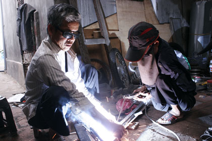 About 5 or 6 years of using, the vehicle started to have problems. Some parts were broken and it could no longer move. At that time, Thang discussed with his brothers to make their own one with his father’s motorbike. But for a young man with weak, paralyzed, trembling legs, who would support his idea when he even has difficulty with his daily activities? Thach said: “At that time, Thang consulted his family, but everyone objected”. “Your limbs are so weak, even for your daily activities you have to depend on us. Do you think you can do it?” Thach said to his son. “Yes”, Thang answered in his self-confidence. And with his energy and bold statement, he successful assembly of the first products.