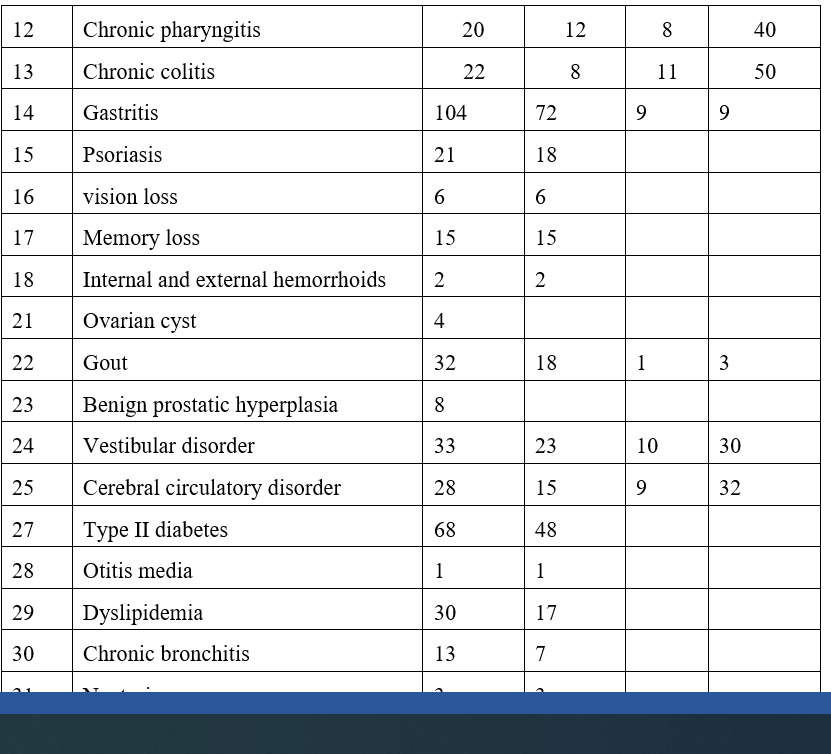 Patients who come to join the detox sauna are mainly workers and retirees, accounting for a high percentage. Under 25 years old and over 81 years old have the same low rate of 2.71%
