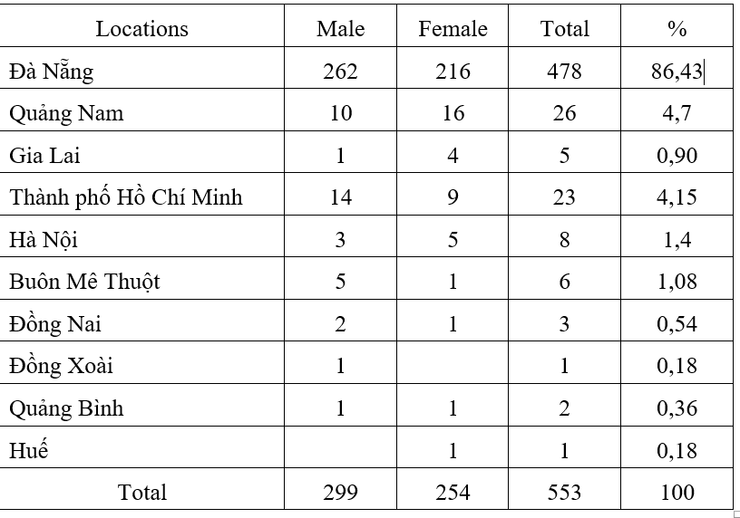 - The number of people participating in the sauna detox program at the Center is still small, mainly locals account for 86.43%. Quang Nam and Ho Chi Minh City have similar numbers of 4.70% and 4.15%, the other provinces have smaller numbers.