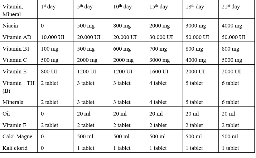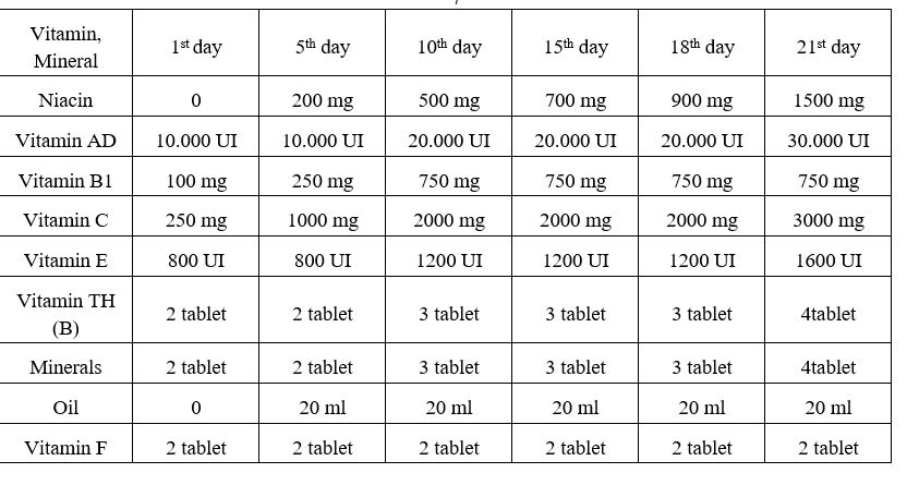 Table 4. Dosage of vitamins, minerals, oil when reaching the end reaches the lowest dose.