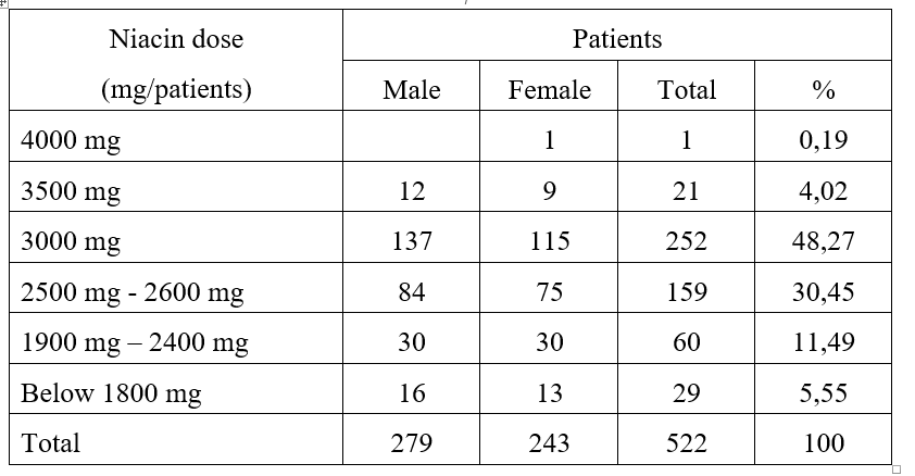 Table 3. Doses of vitamins, minerals, cooking oil when reaching the end phenomenon in the person reaching the highest dose